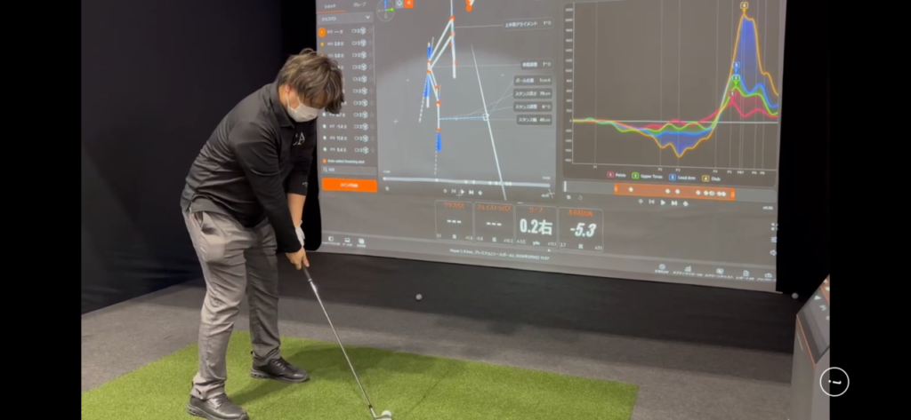 こちらがスイングを正面からとらえた画面です。