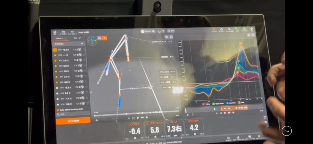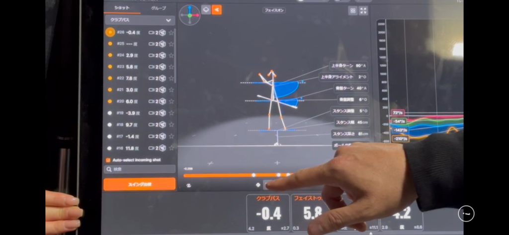 よく見ると上半身のターン角度、骨盤のターン角度などがデータとして表示されておりますね。